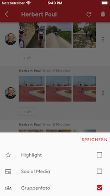 Lange auf das gewünschte Foto Tappen. Es öffnet sich ein Dialog zum Markieren als "Group Photo"