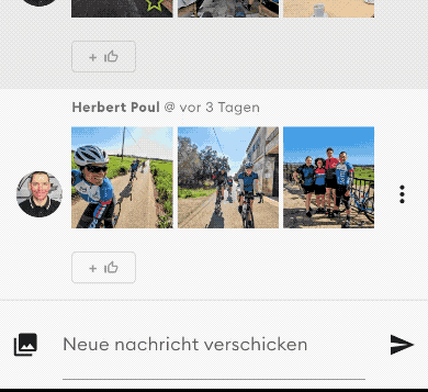Sobald man mit der Auswahl glücklich ist kann man den "senden" Button drücken. (Nachricht ist optional). Sobald die Fotos erfolgreich hochgeladen wurden (dies kann ein paar MInuten dauern) sieht man diese direkt im Chat.